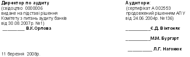 Аудиторська перевірка проводилась з відома осіб, відповідальних за фінансово-господарську діяльність Банку.