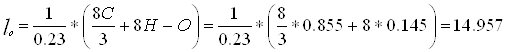 0,23 – массовое содержание кислорода в 1 кг воздуха;