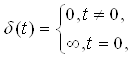У задачах аналізу сигналів часто використовують так звану дельта-функцію або функцію Дірака, яка є нескінченно вузьким імпульсом з нескінченною амплітудою, розташований при нульовому значенні аргументу функції. Площа цього одиничного імпульсу (рис. 2) дорівнює одиниці: