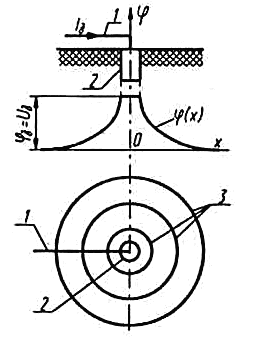 Токовый электрод располагают на расстоянии от края испытываемого заземлителя: