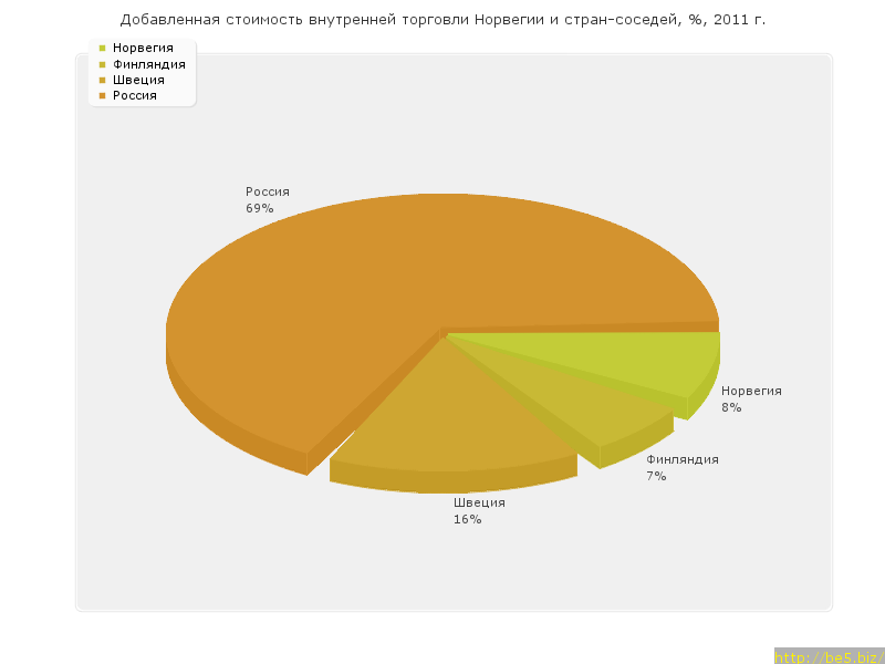 - Добавленная стоимость внутренней торговли Норвегии и стран-соседей, %, 2011 г. (график);